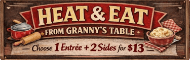 House Slaw, Pinto Beans, Rice, Seasoned fries, Caesar Salad, Onion and Jalapeno Straws or Fried Okra